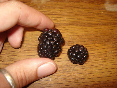 One more picture before I go...... See my monster blackberry?? I still can't not believe how many blackberries we got from our vines..... And.......... I made Jam:) I'm actually quite proud of myself.... I didn't use a recipe.... But I did read several websites about how to do it before I did it... Just used equal parts berries and sugar..... mashed everything, let it sit over night, strained it and then boiled the crap out it.. I honestly didn't think it would work..... But it did :) And OMG is it yummy! I went and bought some yummy bread earlier and later me and the kids are going to have another taste:)